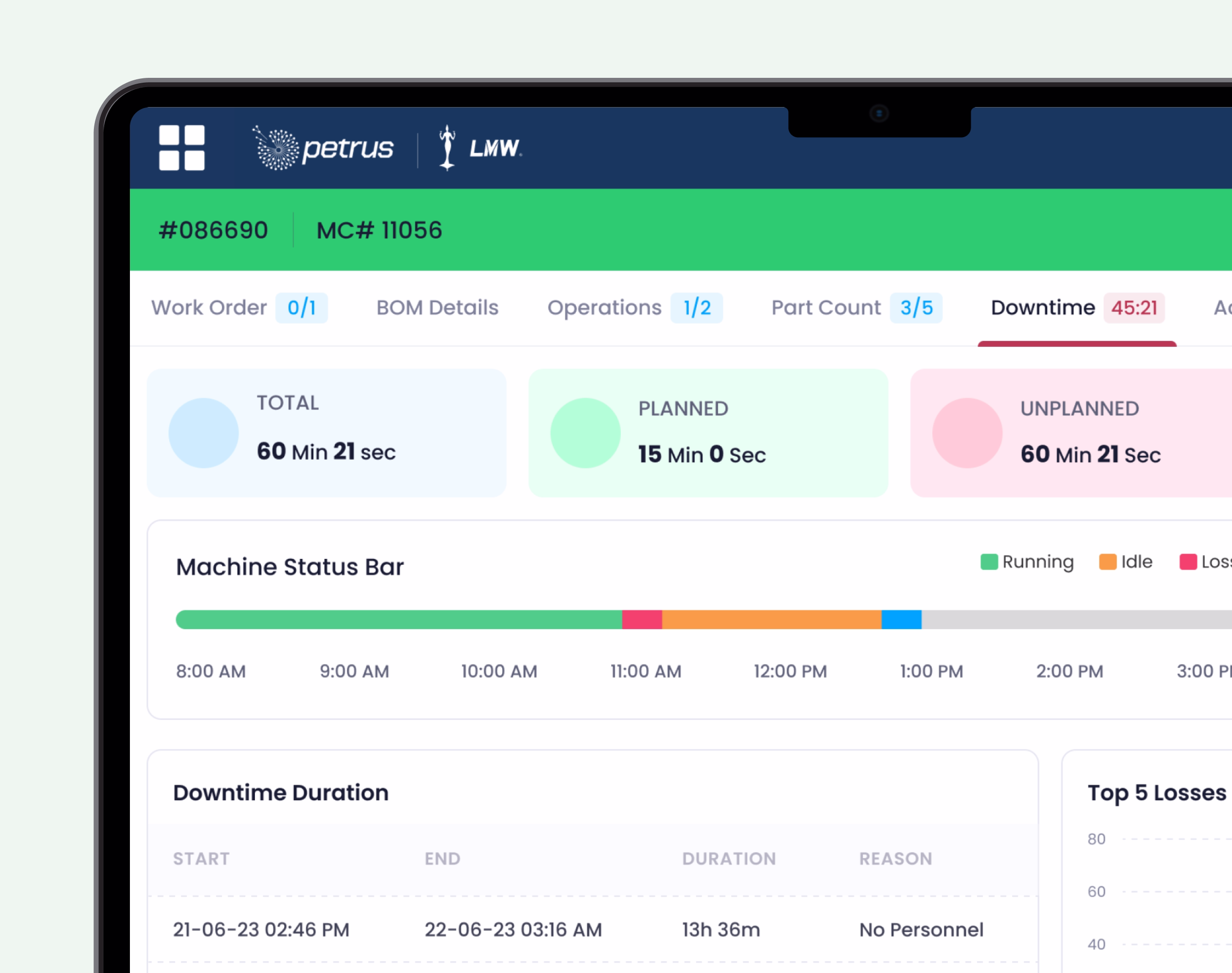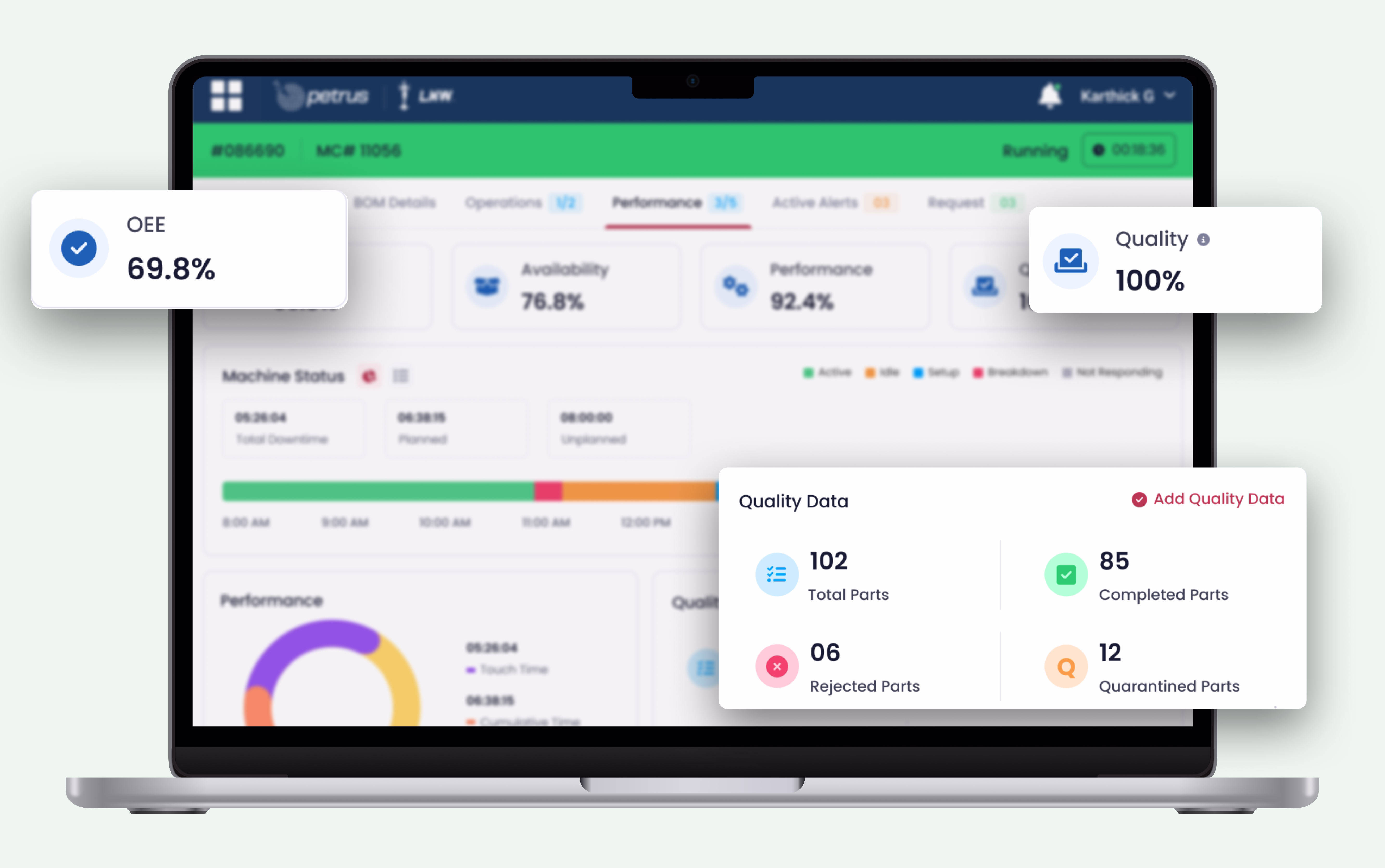 Live visibility into machine status, performance, and downtime.